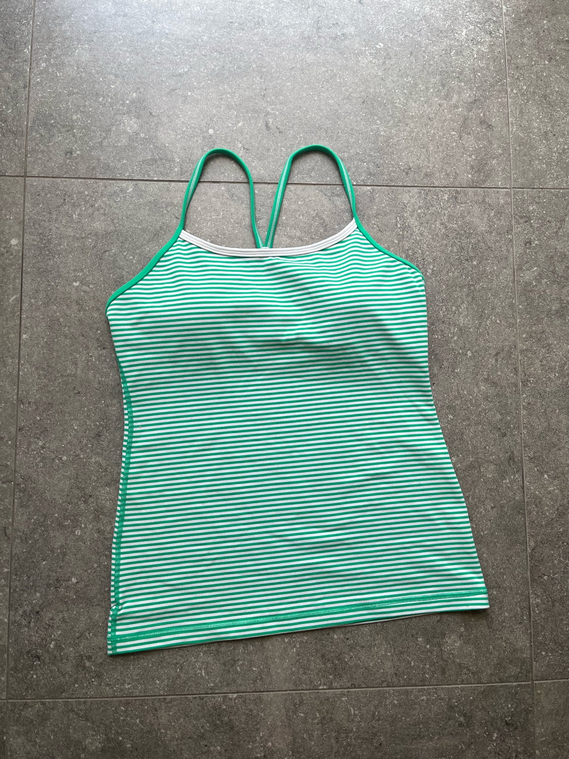 Shop › Green striped sports tank Image 1 of 6 Image 2 of 6 Image 3 of 6 Image 4 of 6 Image 5 of 6 Image 6 of 6 Green striped sports tank $50.00 Size - M /12Brand - Lulu Era - 2000sFabric Comp - Poly X spandexCondition - 8/10 Add To Cart Added! Size - M /12Brand - Lulu Era - 2000sFabric Comp - Poly X spandexCondition - 8/10