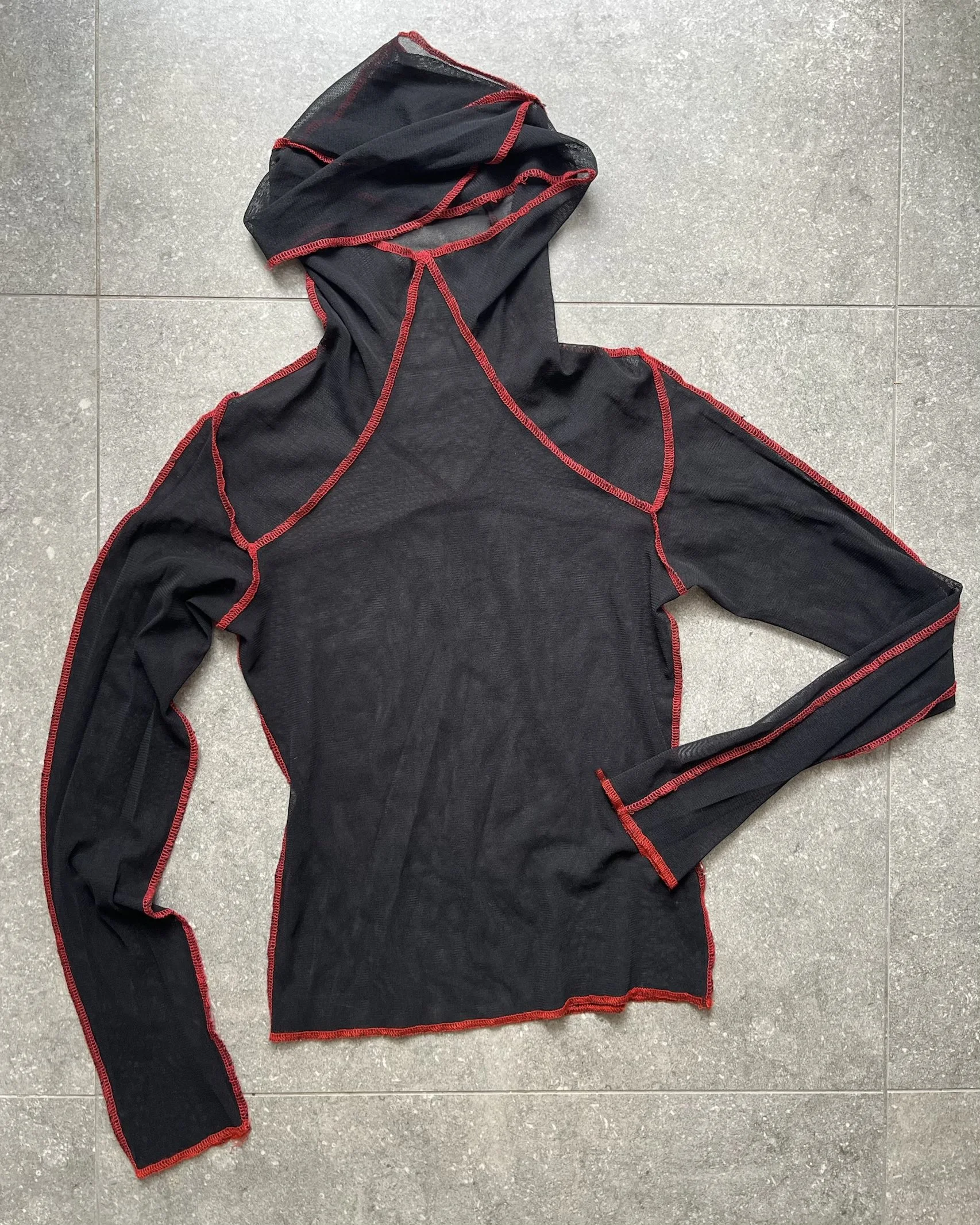 Shop › Black mesh hooded top Image 1 of 6 Image 2 of 6 Image 3 of 6 Image 4 of 6 Image 5 of 6 Image 6 of 6 Black mesh hooded top $60.00 Brand - CyberdogSize - SEra - 2000sFabric comp - NylonCondition - 8/10 Add To Cart Added! Brand - CyberdogSize - SEra - 2000sFabric comp - NylonCondition - 8/10