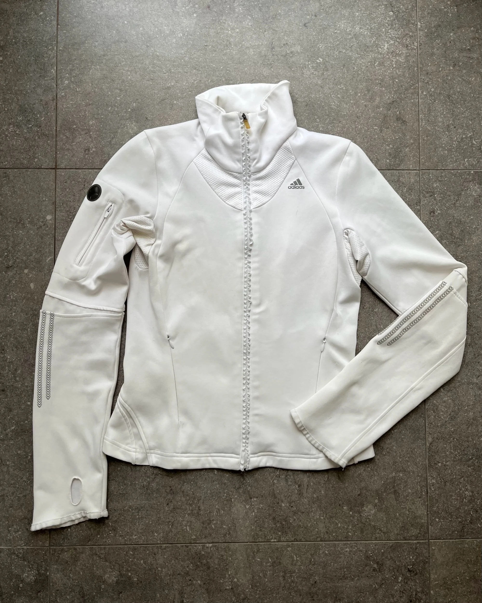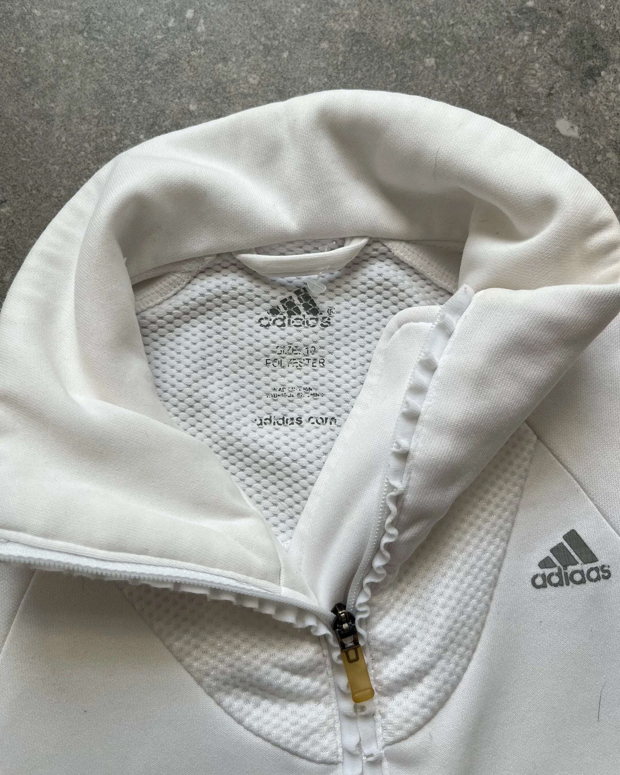 Shop › Adidas white zip up jacket Image 1 of 6 Image 2 of 6 Image 3 of 6 Image 4 of 6 Image 5 of 6 Image 6 of 6 Adidas white zip up jacket $65.00 Brand - AdidasSize - 10Era - 2000sFabric comp - poly x elastane Condition - 8/10 Add To Cart Added! Brand - AdidasSize - 10Era - 2000sFabric comp - poly x elastane Condition - 8/10